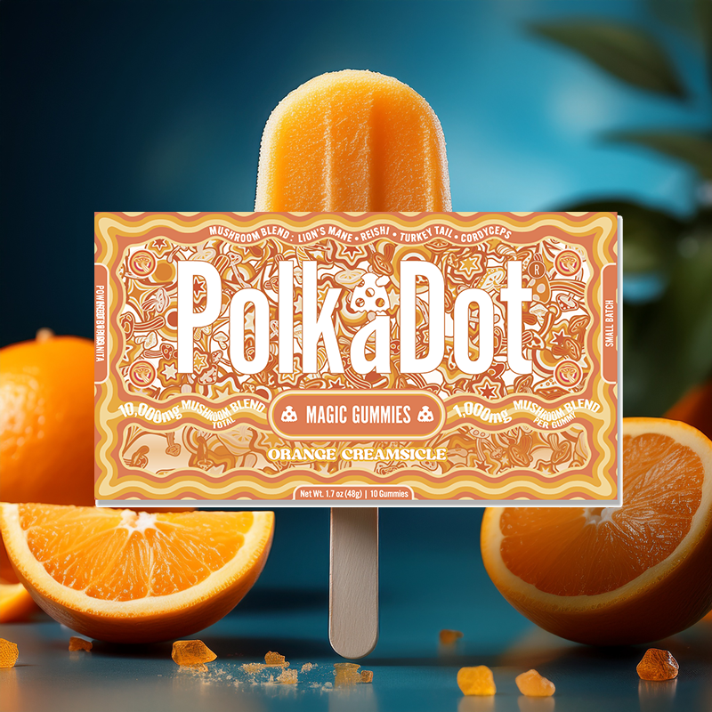 Treat your senses and your mind to PolkaDot’s vibrant lineup of gummies—bursting with bold, playful flavors and infused with functional mushroom magic. Each gummy features a proprietary blend of Amanita muscaria extract and organic functional mushrooms (like Reishi, Lion’s Mane, Cordyceps, and Turkey Tail), designed to support clarity, calm, and cognitive wellness.