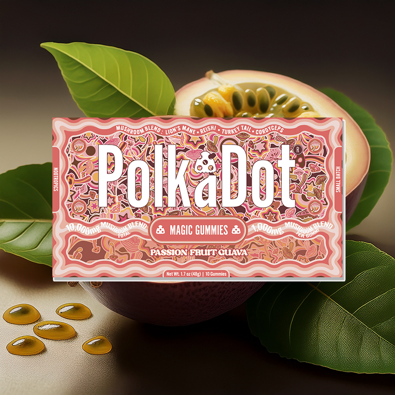 Treat your senses and your mind to PolkaDot’s vibrant lineup of gummies—bursting with bold, playful flavors and infused with functional mushroom magic. Each gummy features a proprietary blend of Amanita muscaria extract and organic functional mushrooms (like Reishi, Lion’s Mane, Cordyceps, and Turkey Tail), designed to support clarity, calm, and cognitive wellness.